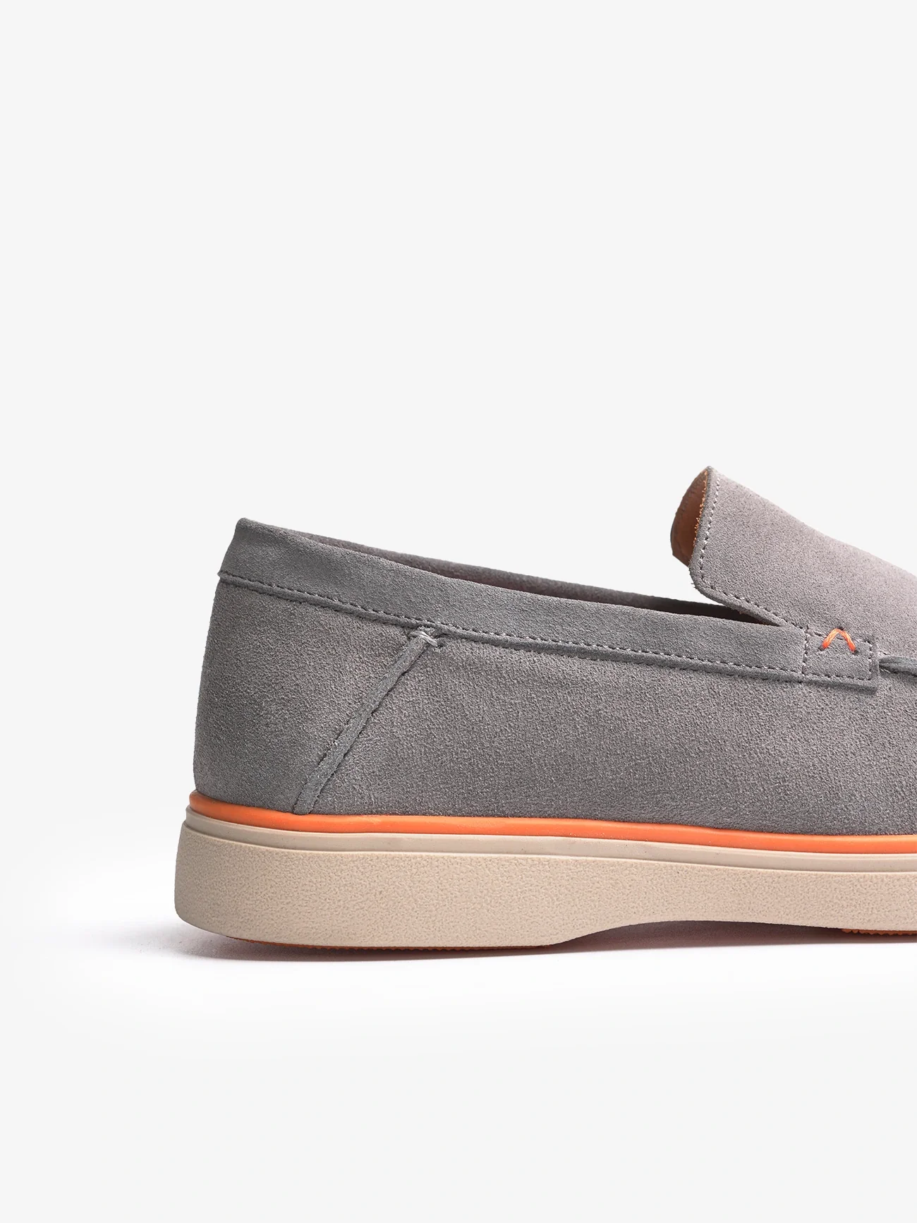 Le mocassin Napoli séduit par son allure sobre et raffinée. Confectionné en daim souple, il repose sur une semelle en gomme fine et légère pour un port discret et agréable.